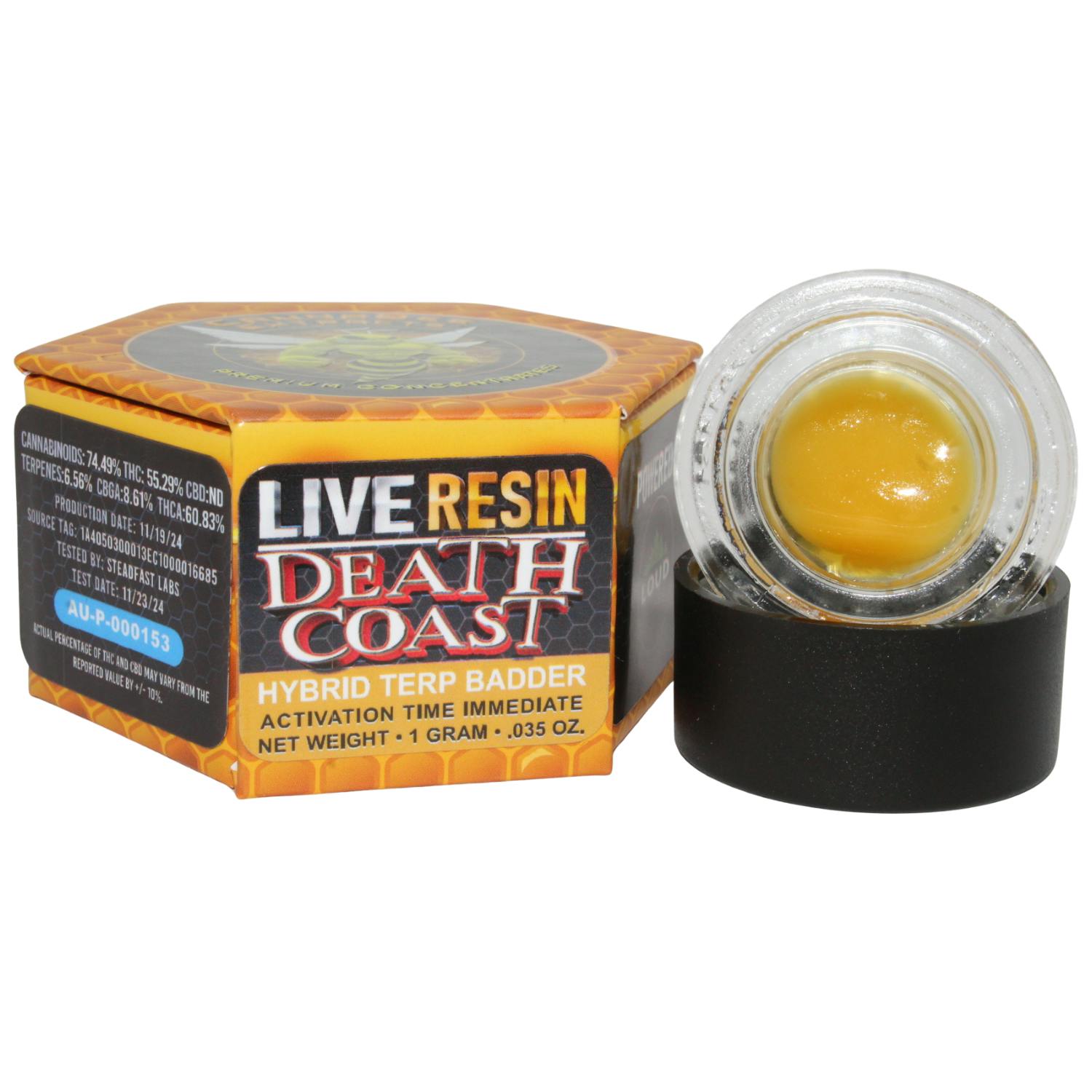 CANNABEE EXTRACTS DEATH COAST 1G LIVE RESIN TERP BADDER REC