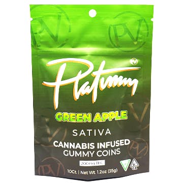 PLATINUM VAPE GREEN APPLE 200MG SATIVA GUMMY COINS REC