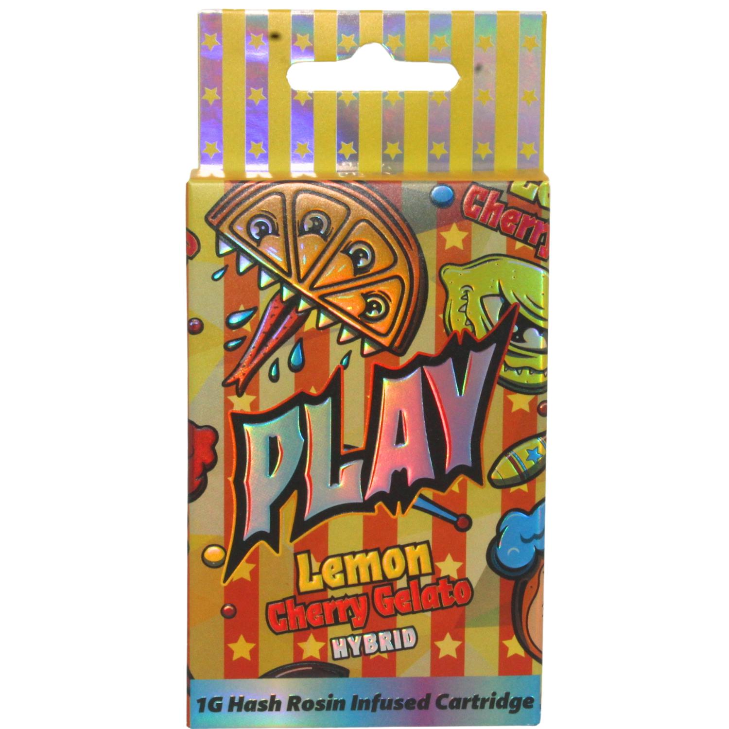 PLAY LEMON CHERRY GELATO 1G HASH ROSIN INFUSED VAPE CART REC